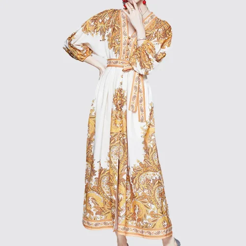 ization Summer Linen Midi Luxury Sundress Abstract Floral Print Woman Casual Long Dress