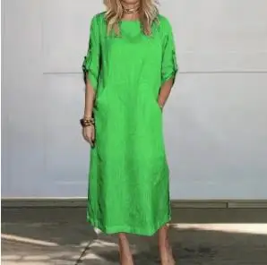 JAC22 S114Y Women’s Casual Linen Loose Button Short Sleeve Ankle-length Sundress Tops