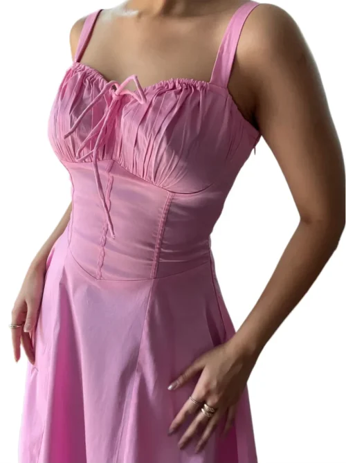 KY Linen Short Sleeve Sexy Corset Style Tie Up Back Square Neck Sundresses Women Summer