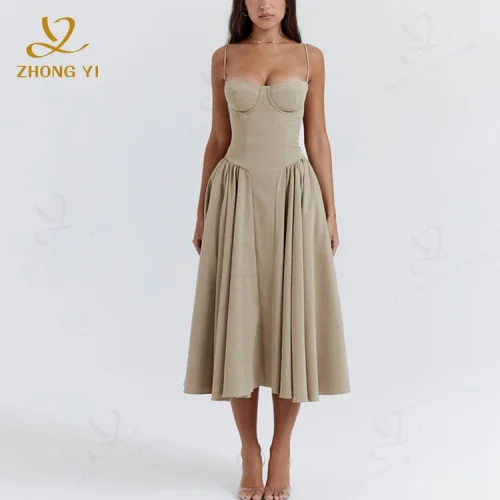 Lady Elegant Slim Backless Dress for Women Fashion Ladies Suspender Dresses Summer Female Party Evening Robes Vestidos