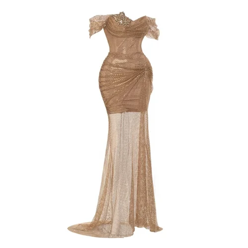 Luxury Glamorous Off Shoulder Sweetheart Neckline Corset Bodice Mermaid Gown Sequin and Beaded Embellishment Floor Length Dress