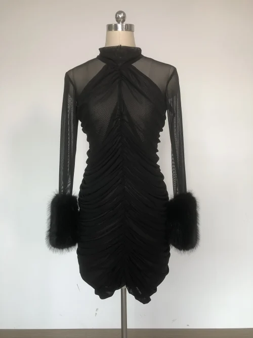 LS2600 New Spring Summer Long Sleeve Ruffle Dress Birthday Dresses Women Fashion Feather Dress