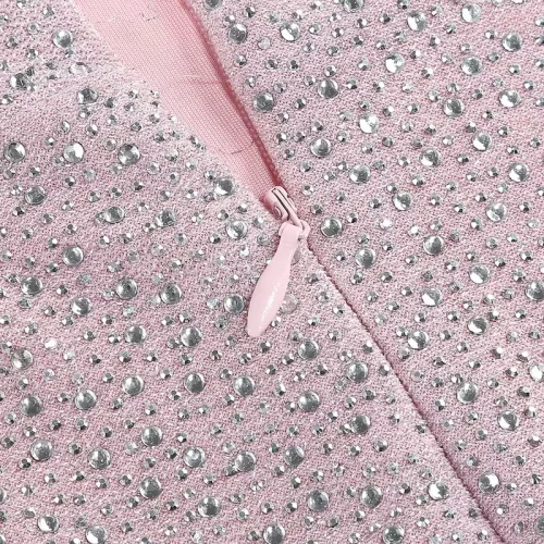 Luxury Crystal Bodycon Evening Party Long Dress for Women Shiny Diamond Bow Design Sequined Pink Sleeveless Backless Sexy Style