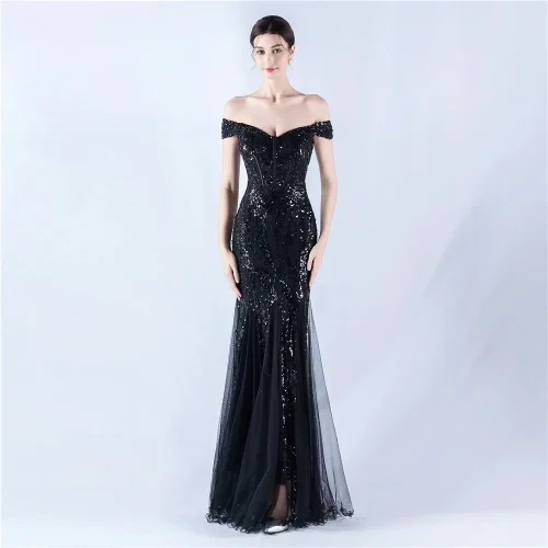 New Style Elegant Women Sequin Long Mermaid Formal Dress One-Shoulder Evening Dress Sexy Slit Strapless Party Dress
