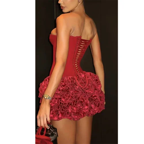 Sleeveless Layered Ruffle Edge Mini Dress High Quality Strapless Layered Skirt Corset Flowers Cocktail Dresses Women’s Dresses