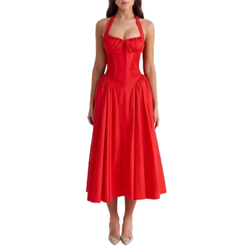 Summer Fashion Women Solid Color Dress Halter Sleeveless Elegant Dresses Sexy a Line Casual Dresses