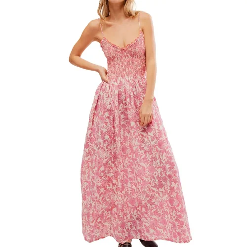 Summer Latest Ladies Women Casual Sleeveless Halter Plisse Sundress Pleated Dress Print Elegant Midi Long Chiffon Mini Floral
