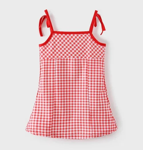Summer Little Girls Twirl 6M-10 Years Spaghetti Strap Cotton Toddler Girls Plaid Flannel Shirt Dress