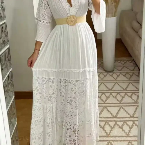 Summer Roman O-Neck Tunic Slim Casual Midi Dress for Women Sleeveless Empire Lace Vestidos