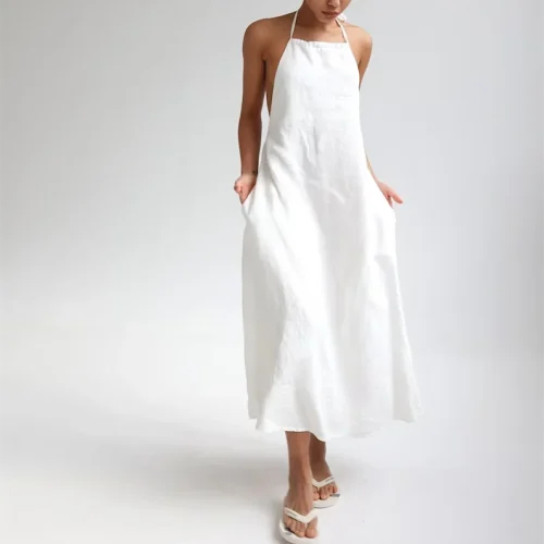 Summer Pinafore Sundress Open Back Slip Dress 100% Cotton Natural Organic Casual Dresses Plus Size Women’s Dresses