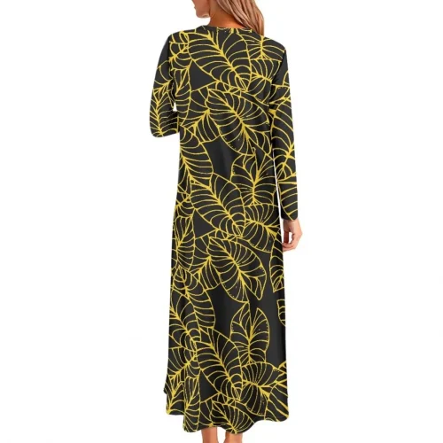 Sundress Kalo Leaf Design Dresses Women’s Dress Autumn Casual O Neck Long Sleeves Print on Demand Wearable Midi Gifts