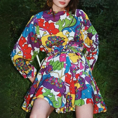 Super Premium Quality Mini Hand Block Print Dress With Multi Colored Floral Pattern Hand Block Print Dress
