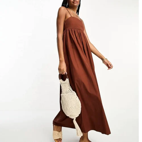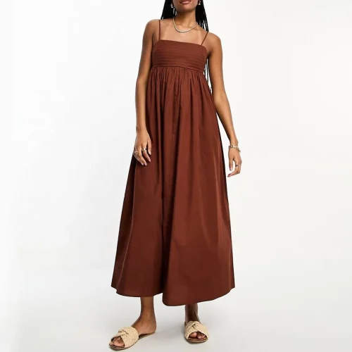 Sweet New Arrival Organic Cotton Rope Neckline Sundress High Quality Designer Pencil Dress for Women Casual Stylish Wear Natural