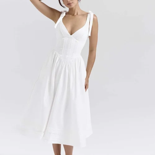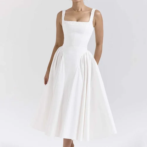 Timeless White Cotton Midi Sundress Perfect for Any Summer Occasion Women Clothing