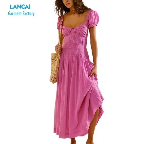 Sweet Vintage Maxi Dresses for Women Beautiful Bohemian Casual Natural Fabrics Solid Digital Printing Long Casual Resort Wears