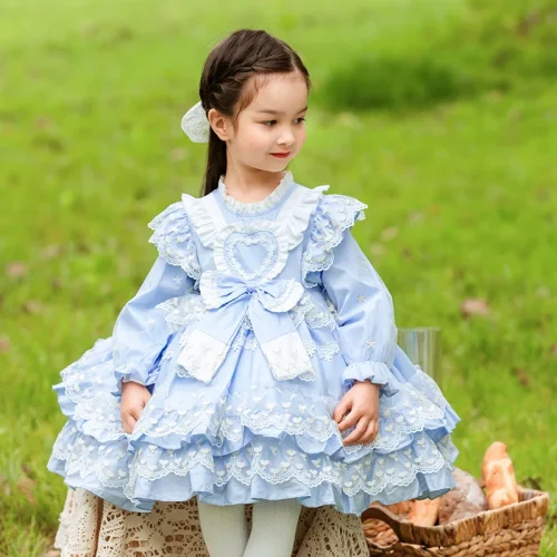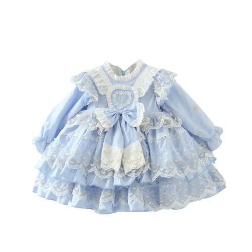 Toddler Baby Girls Floral Embroidery Dress Long Sleeve Party Sundress Skirt Children Lolita Spanish Gown Ball Dress