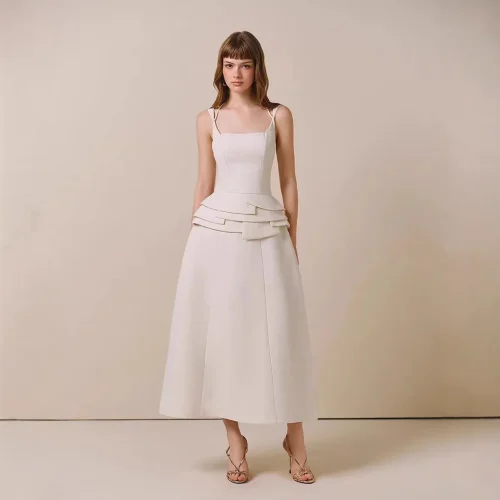 Vietnamese Niche New Temperament Elegant Party Dresses High Waist Stacked Sling Long Dress