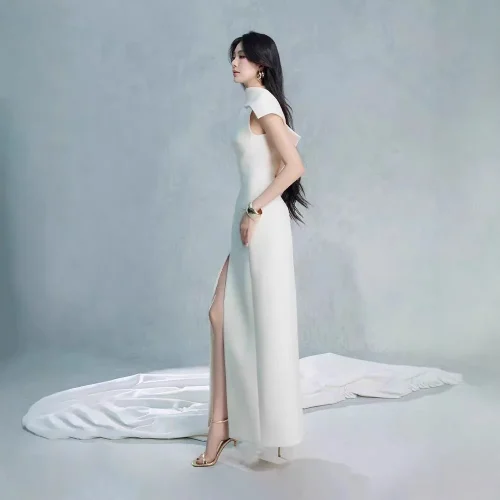Vietnamese Niche New Temperament Elegant Party Dress Slim Fit Backless Sleeveless Split Long Dress