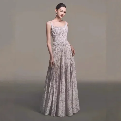 Vietnamese Niche Designer Floral Pleated Camisole Long Dress New Summer Party Style with Gentle Temperament Floor-Length