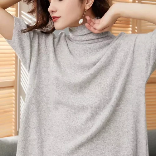NR 100% Cashmere Dress Mini Woolen Sweater Cashmere Sweater Dress Short Sleeved Women Knitted Sweater Dress