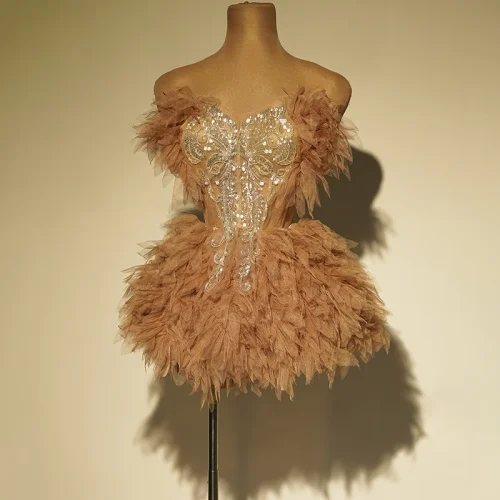 Ocstrade V Neck Sleeveless Feather Boutique Clothing Women Vacation Dresses for Women Mini Bandages Dress Ladies Vestido Summer