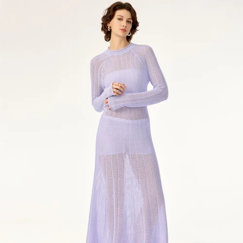 Odm High Twist Soft Touch Skin Cooling Relaxed Fit Hollow Texture Beach Layering Knit Sweater Dress
