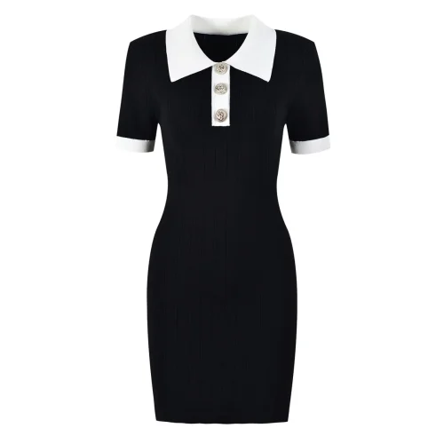 2024 New Arrivals Turn Down Collar Design Short Sleeve Dress Women Casual Summer Knit Dress Ladies Knitted Dress