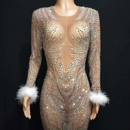 Novance Y1013 Sparkly Rhinestone Costume Bodycon Women Dresses Prom Club Dresses Birthday Performance Costume-da-sirenetta-donna