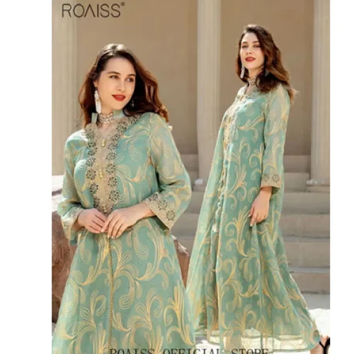 Premium fabric Arabic maxi dresses with detailed neckline work and hijab-matching options now ready in collection