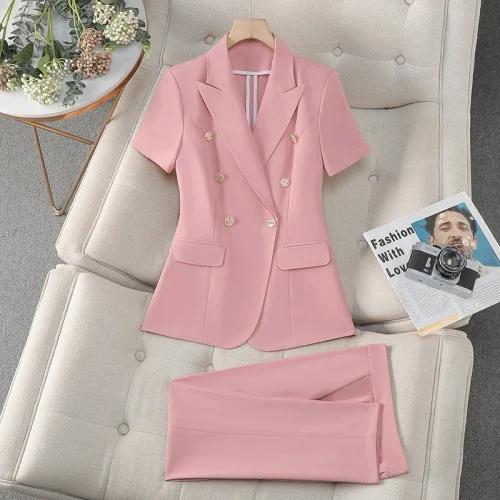 Professional Female Summer Dress Pink Thin Work Suit With Short Sleeves Cotton Goddess Fan High-End Workwear