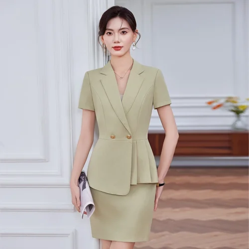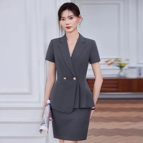 Professional Suit Women’s Summer Thin Short Sleeve Fashion Suit Skirt el Office Lady Managers Work Dress Business Suits