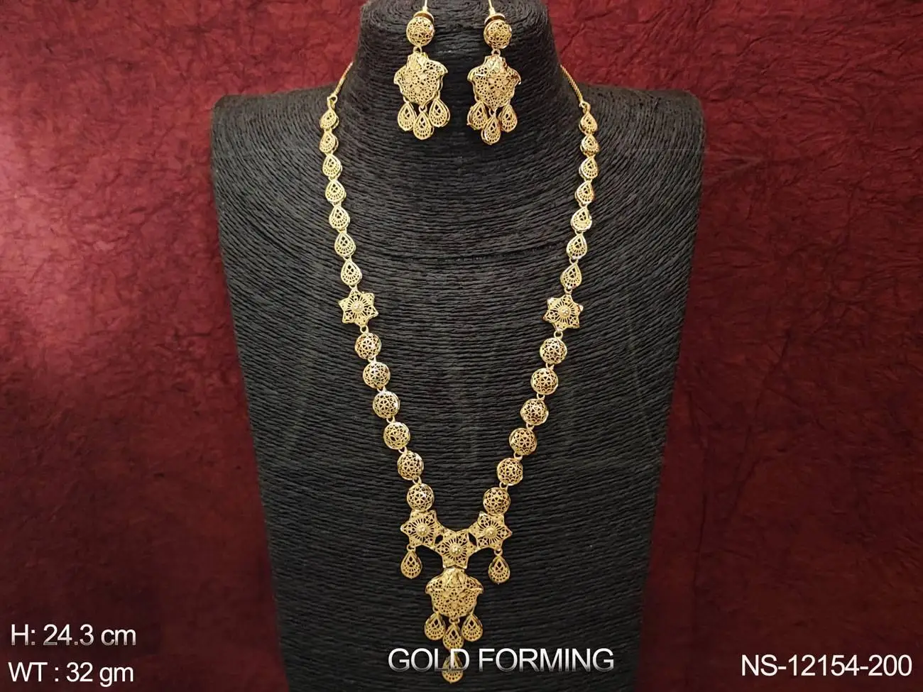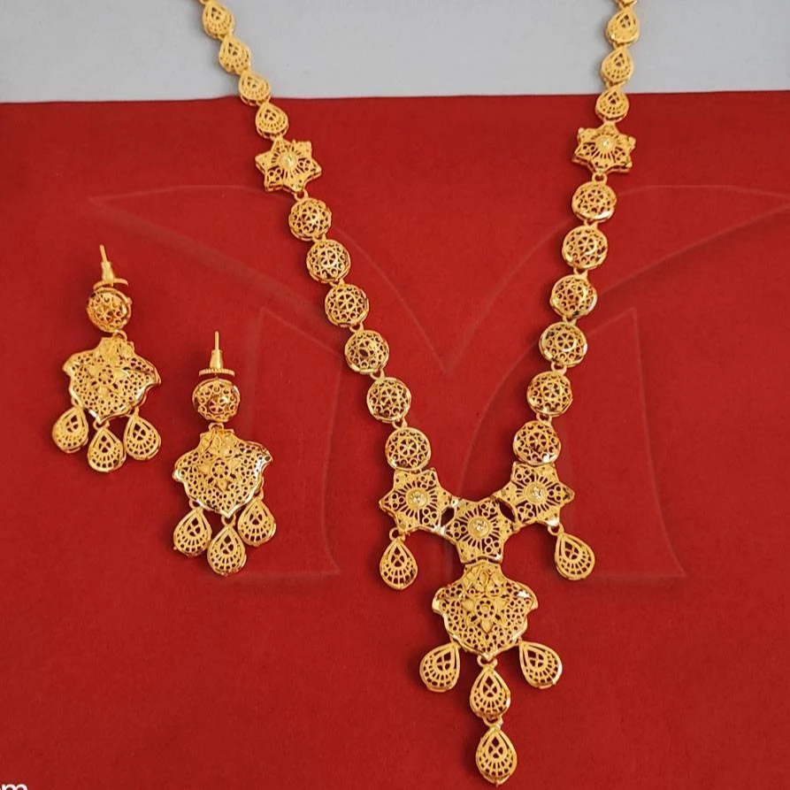 Product Name: 1 Gram Gold Necklace Price in Dubai Gold Forming Polish Party Wear Beautiful Design Gold Forming Women Jewelry Long Necklace Set