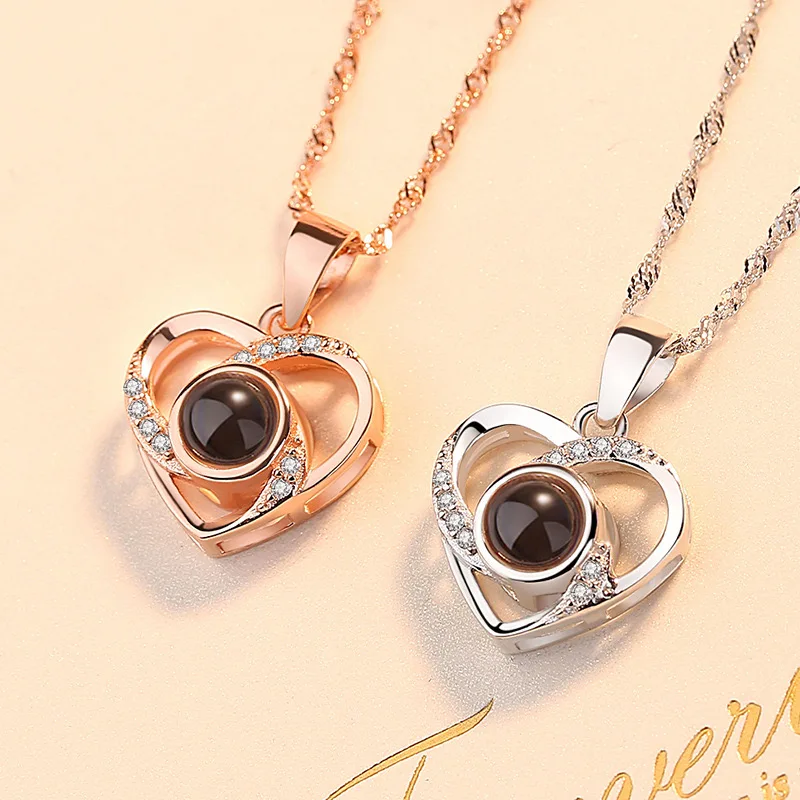 Product Name: 100 Languages Heart Projection Necklace for Women 925 Sterling Silver Picture Projection Wedding Valentine’s Day Gift