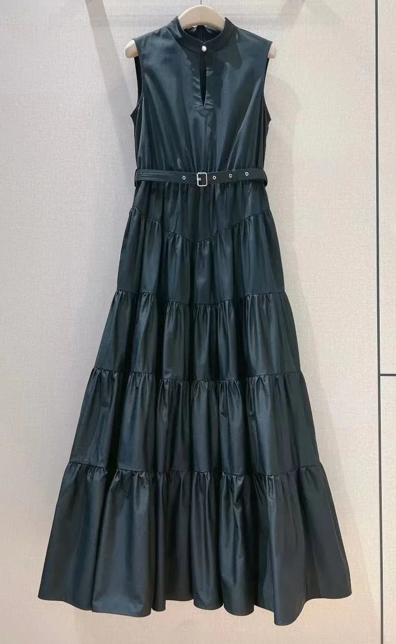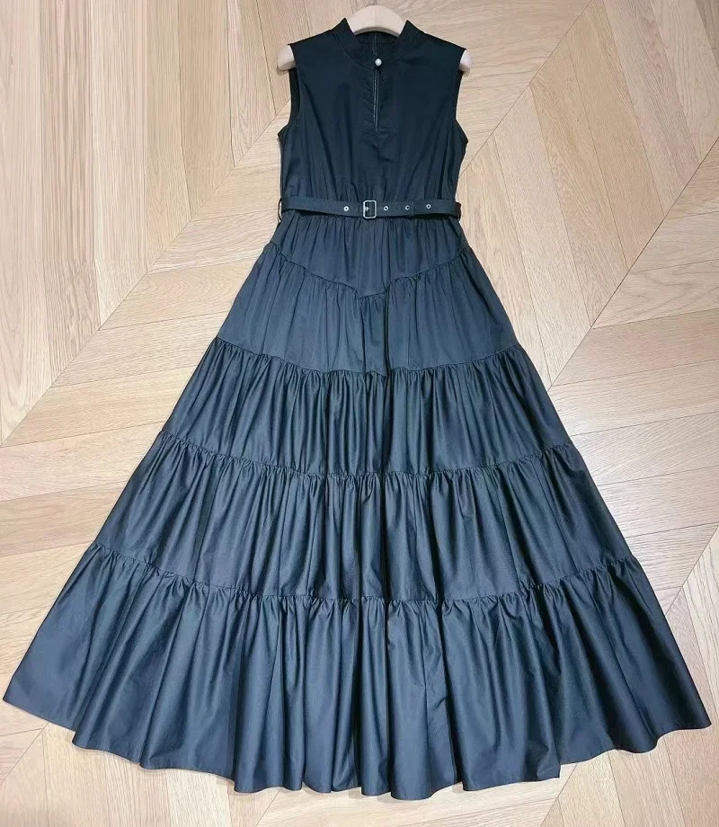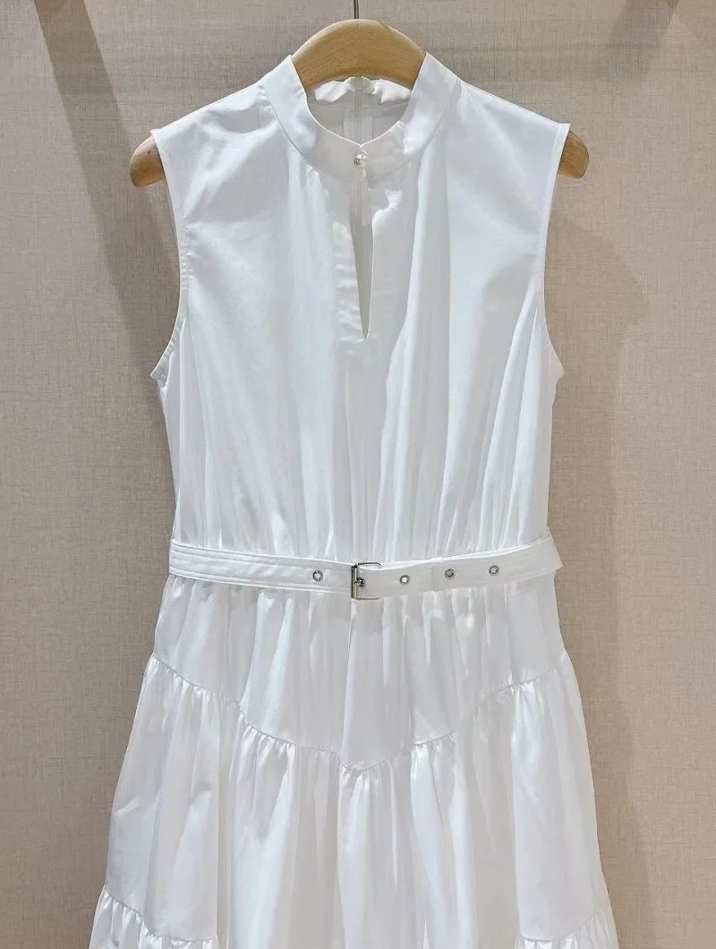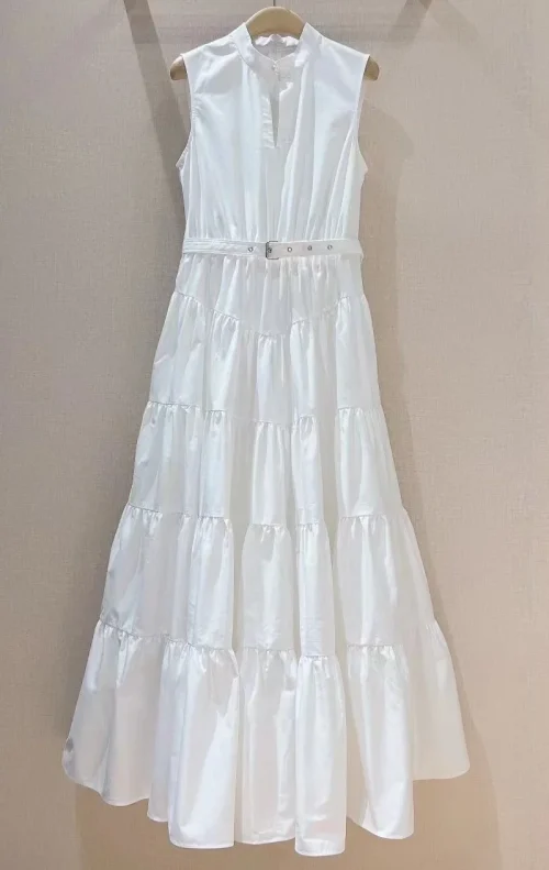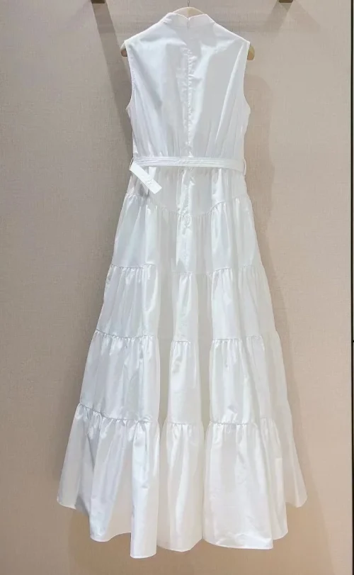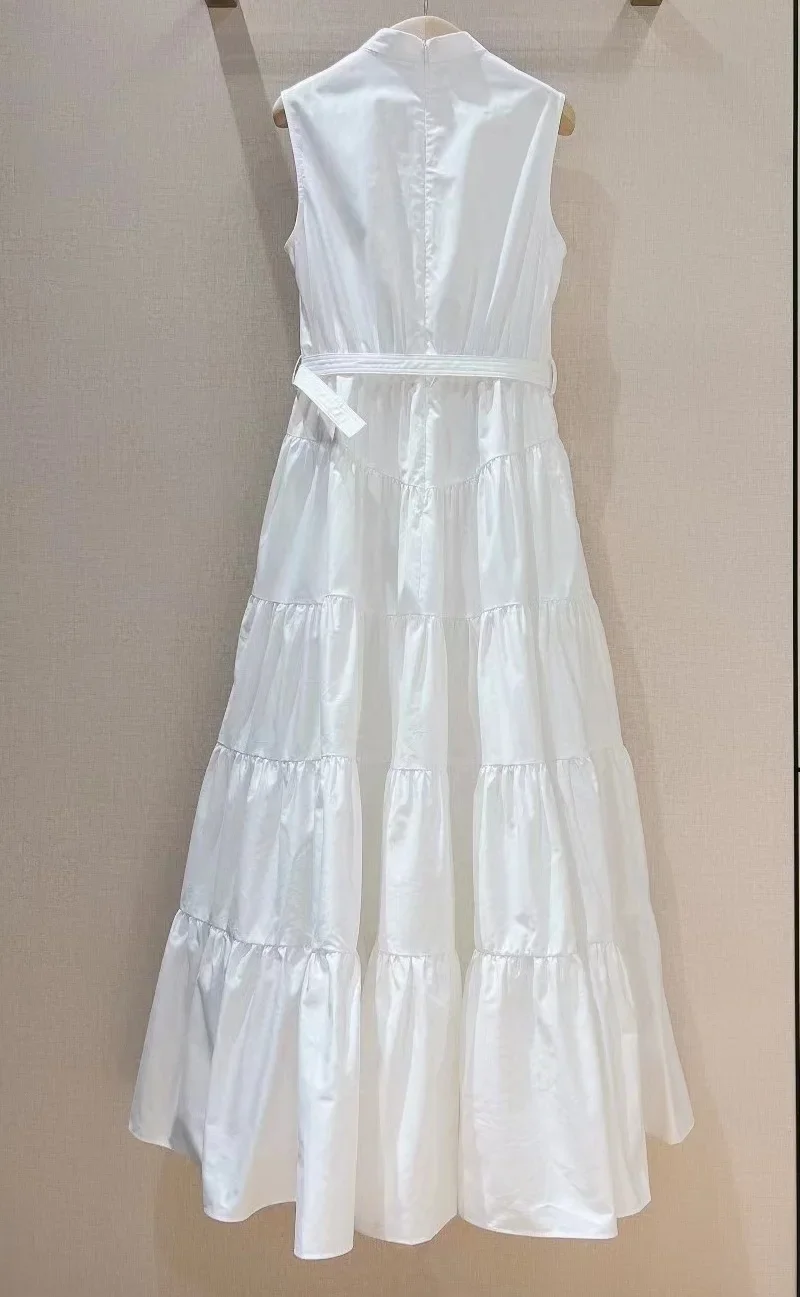 Product Name: 100%Cotton Long Dress 2024 Spring Summer Style Women Belt Deco Sleeveless High Waist Long WhiteMaxi Dress Luxurious Lady