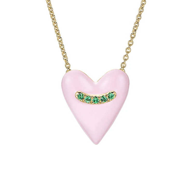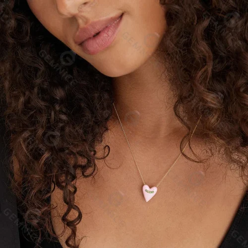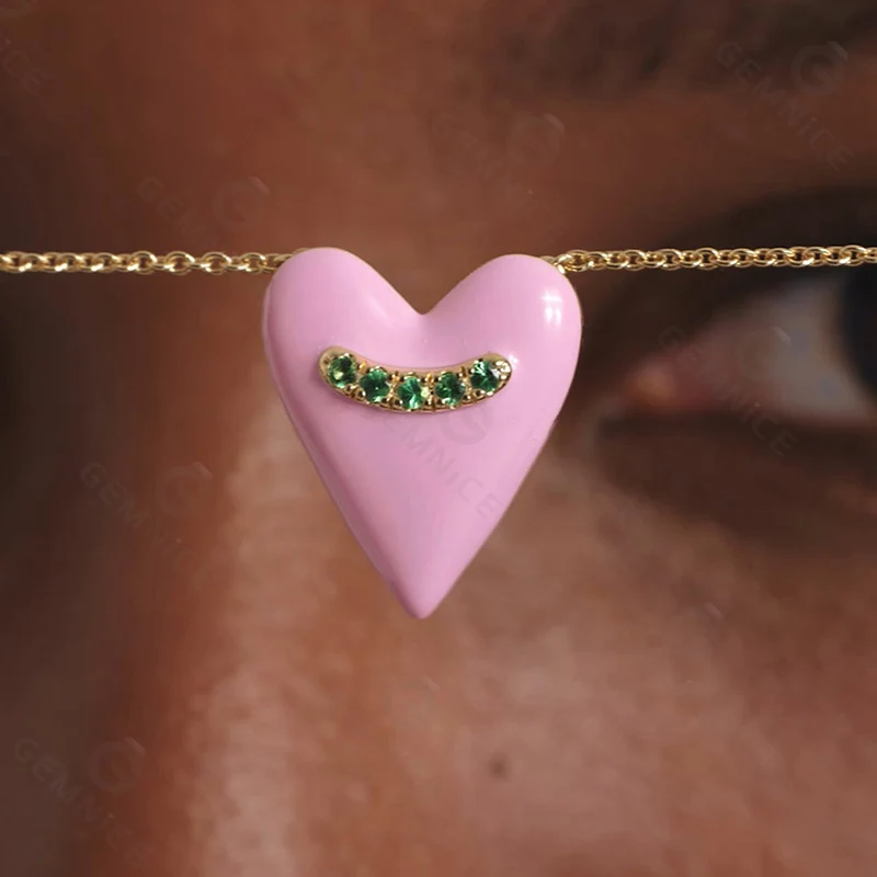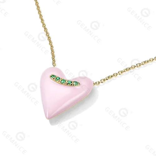 Product Name: 14k Gold Plated Emerald Zircon Pendant with Pink Heart 925 Sterling Silver Bezel Setting Necklace Love for Girls for Parties