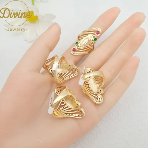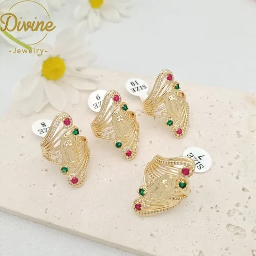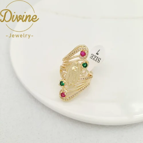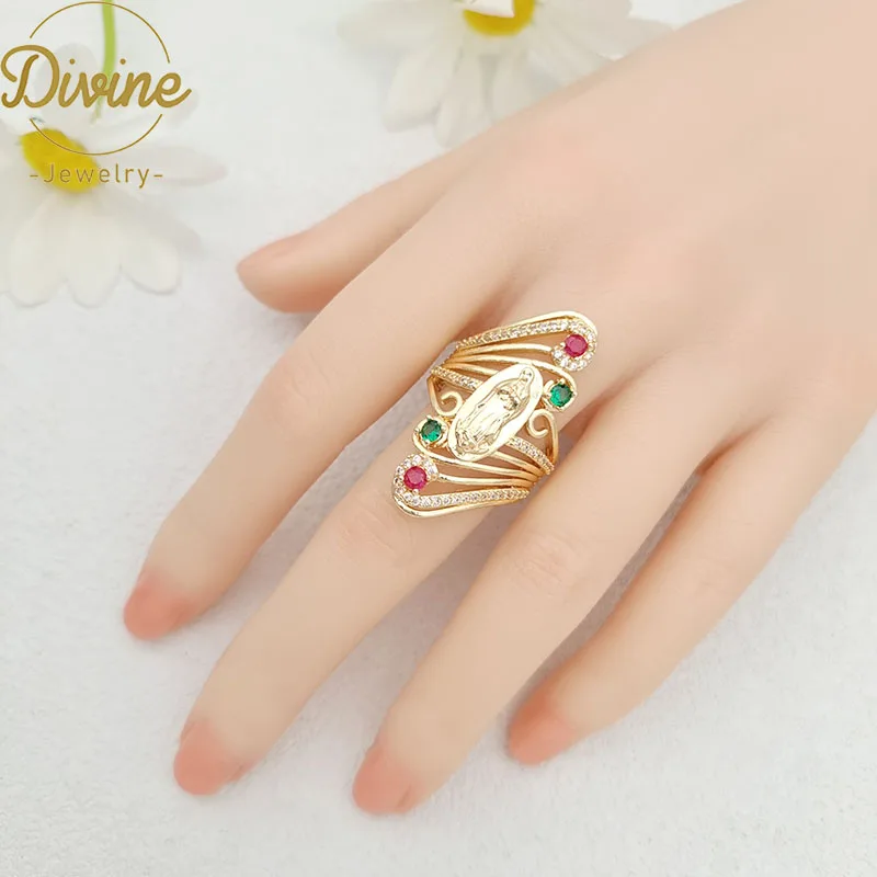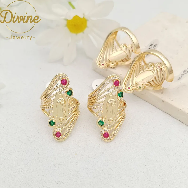 Product Name: 14K Gold Plated Virgin Mary Rings Hollow Design Religious Finger Zircon Ring Oro Laminado Guadalupe Rings for Women Jewelry