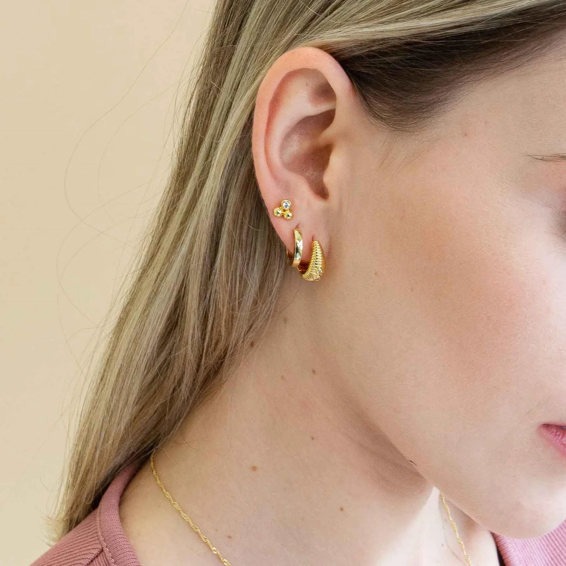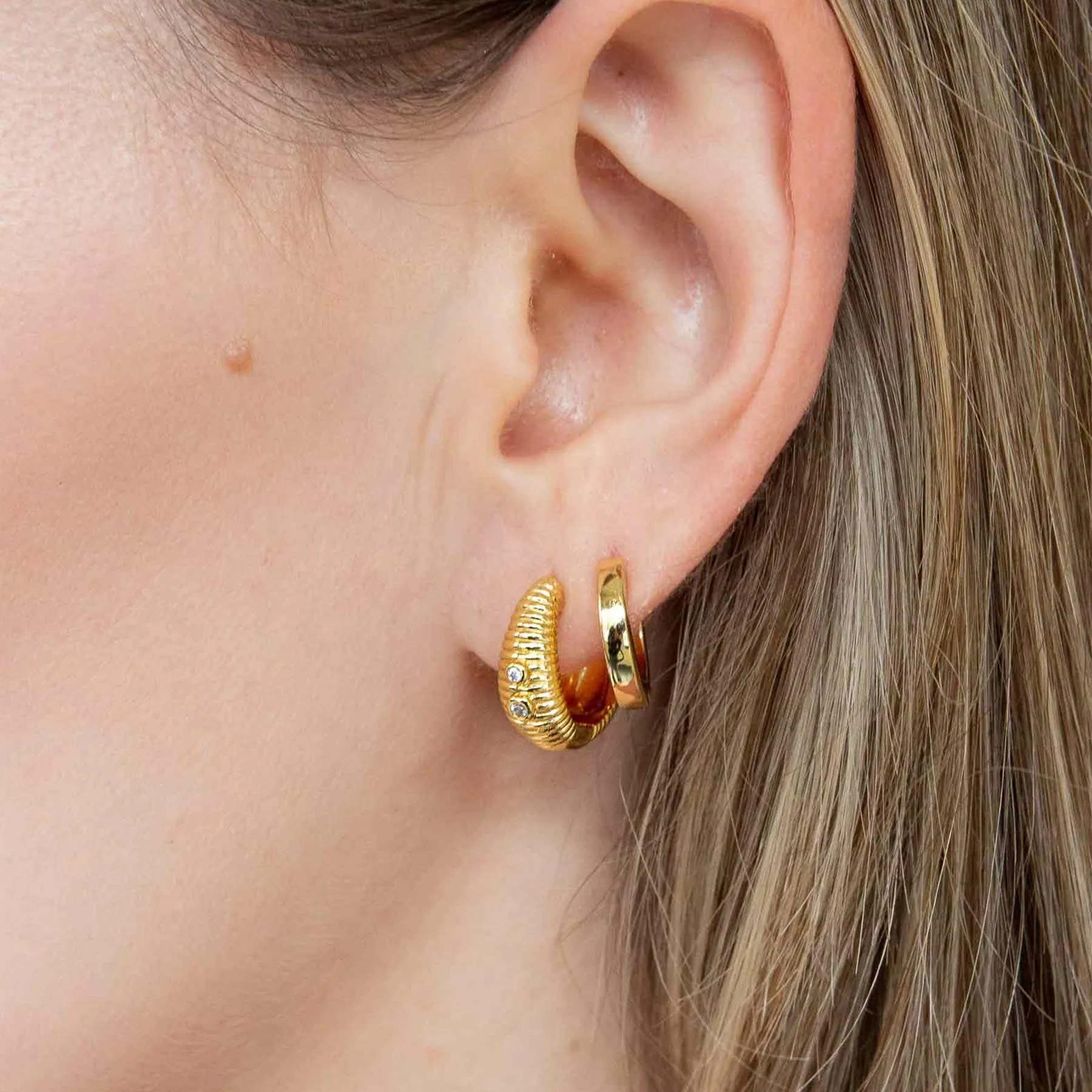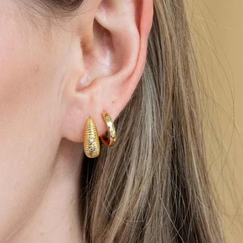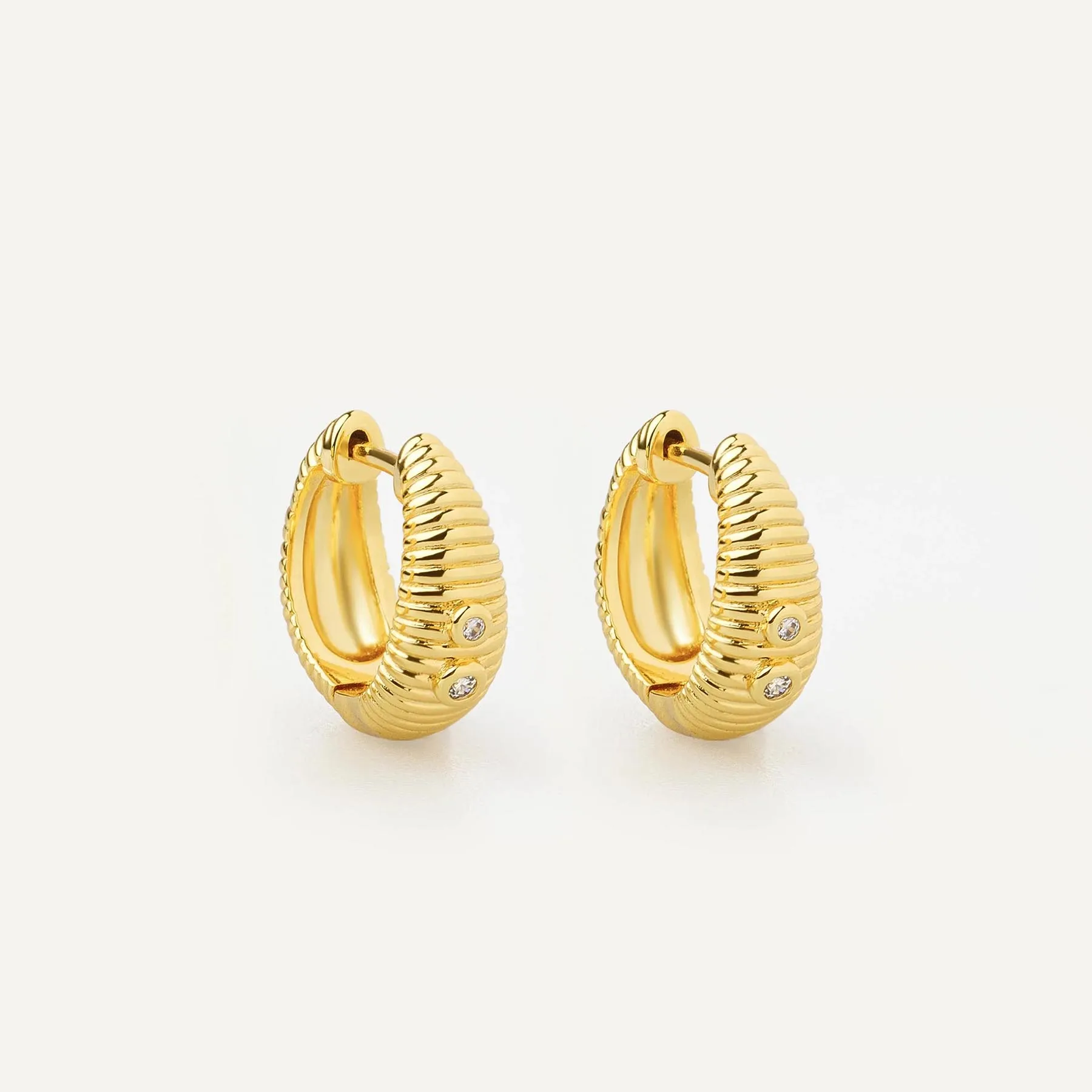 Product Name: 14k Gold Ribbed Cubic Zirconia Hoop Earrings Fine Designer Fashion Textured Handmade Earrings Bulk Earrings