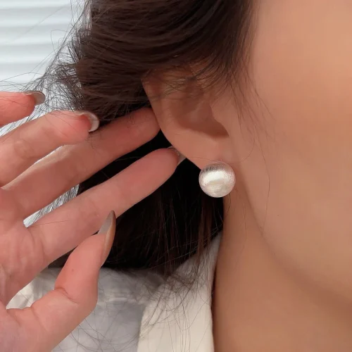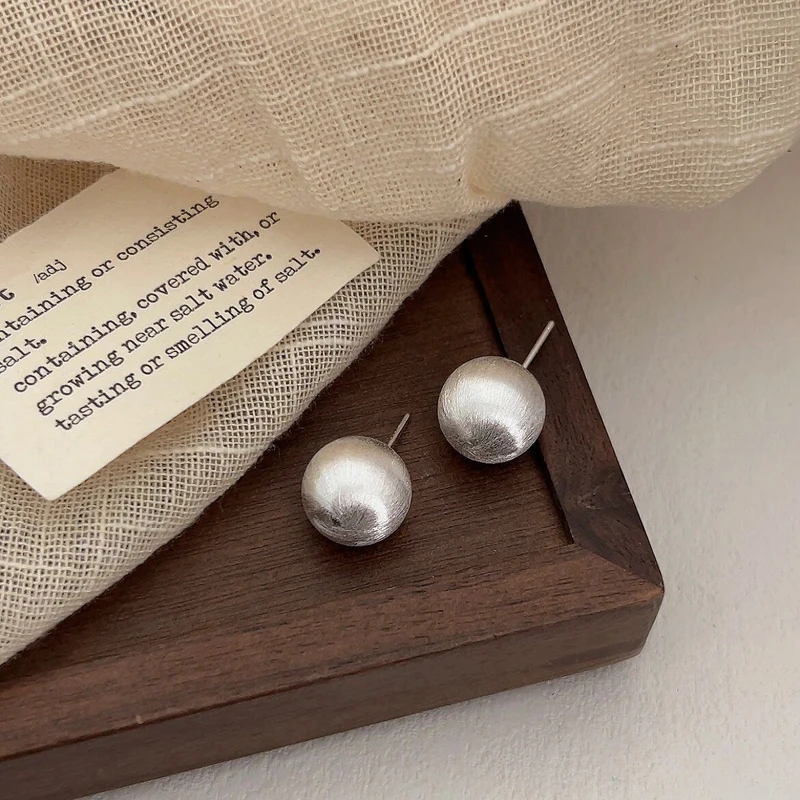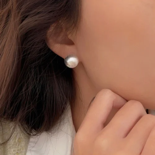 Product Name: 14MM Brushed 925 Sterling Silver Round Ball Stud Earrings for Women Gifts Jewelry