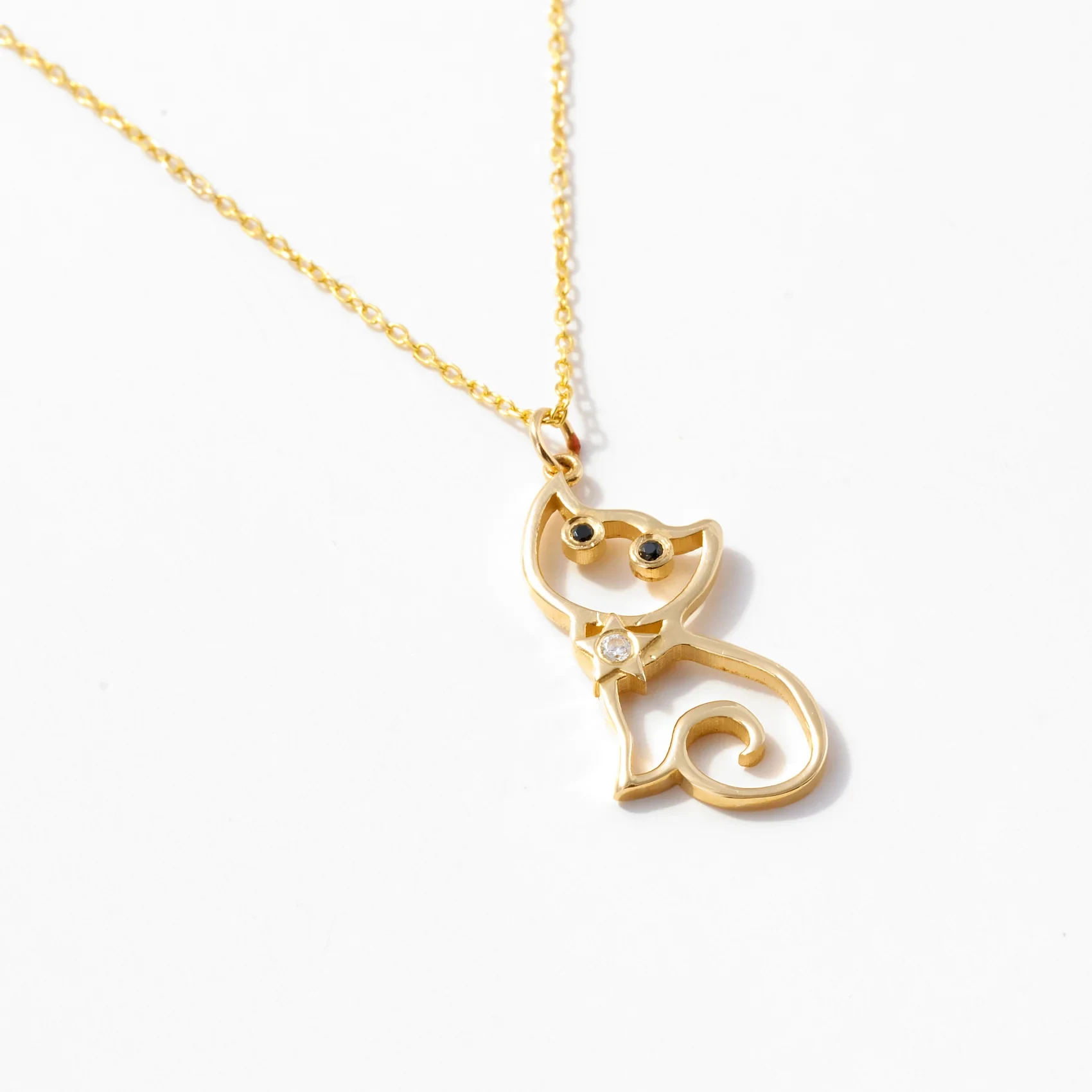 Product Name: 18K Gold Diamond Kitty cat Cute Necklace 925 Sterling Silver Necklace Fashion Jewelry Necklaces Fine Jewelry for Women
