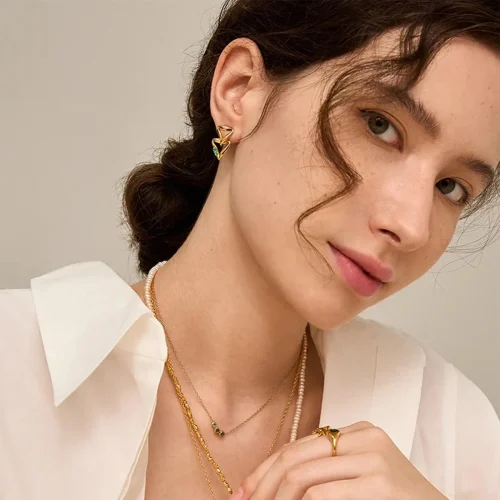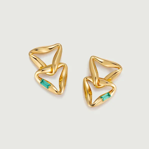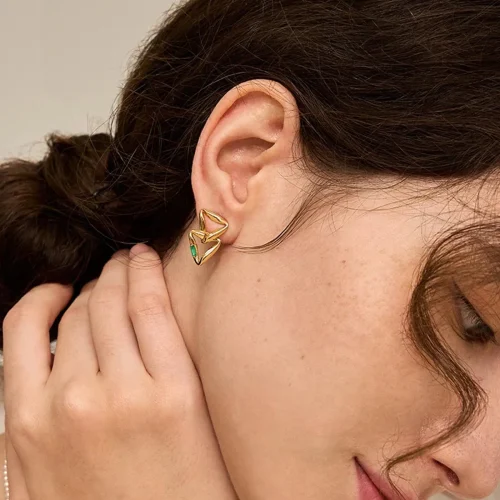 18k Gold Emerald Overlapped Triangle Earrings Designer Charm Earrings Trending Earrings 2025 Waterproof Jewelry
