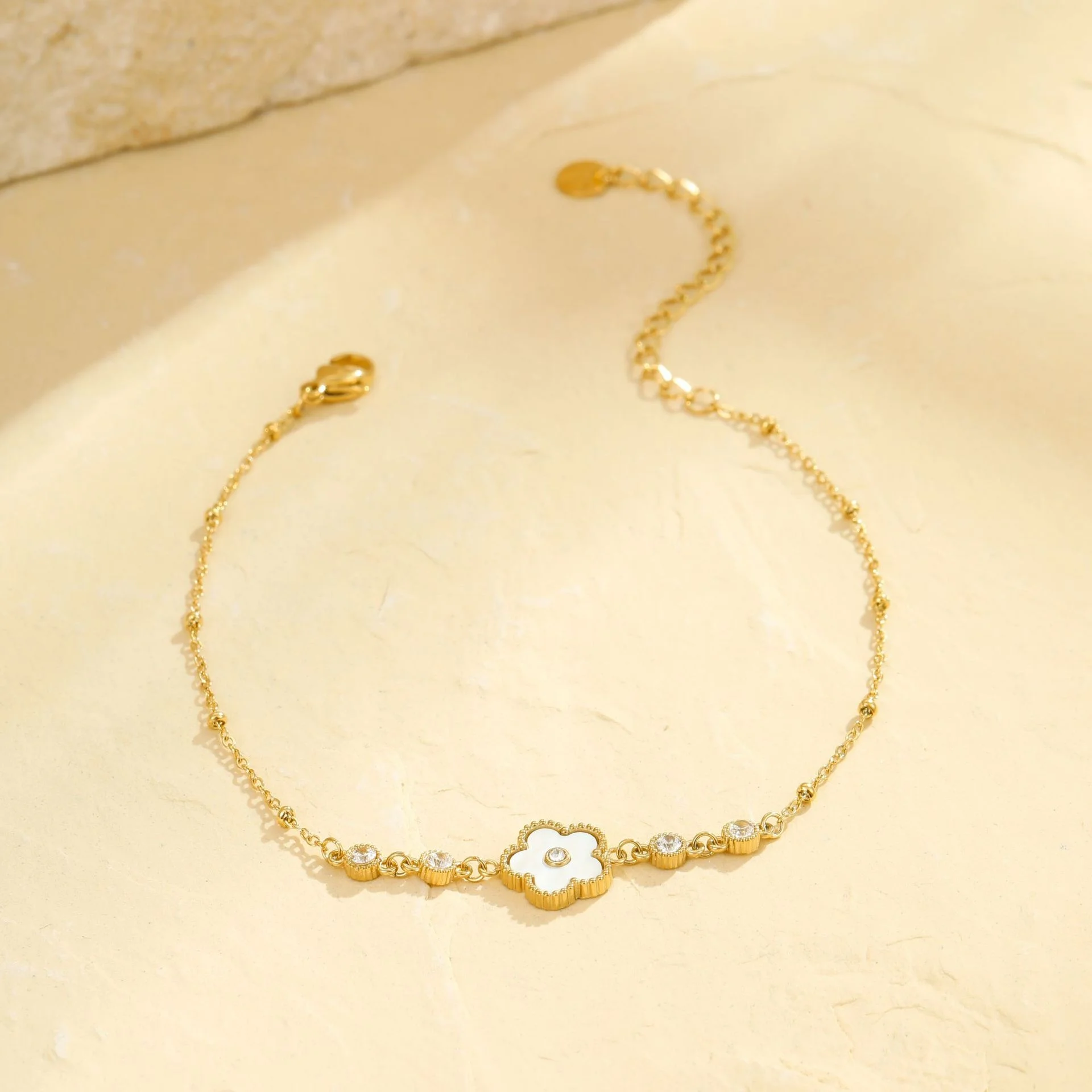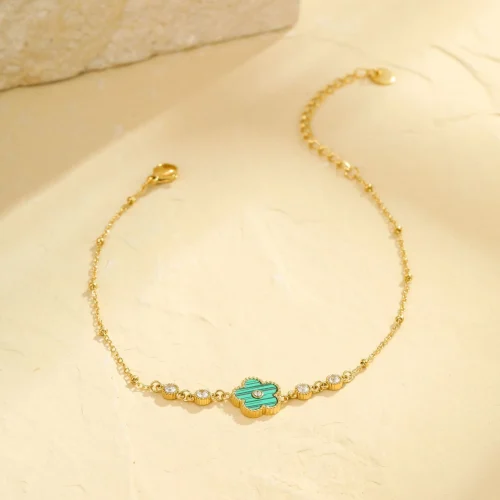 Product Name: 18K Gold Five-Leaf Flower Anklet Trendy Ins Beach Vacation Style – Fashion Stainless Steel Gift