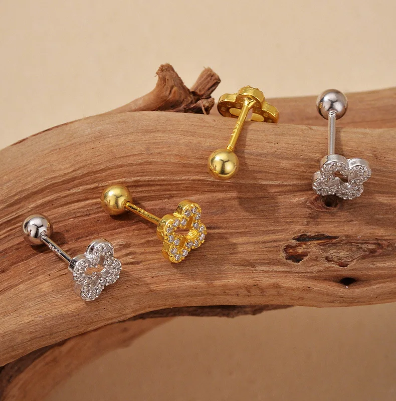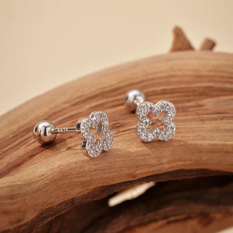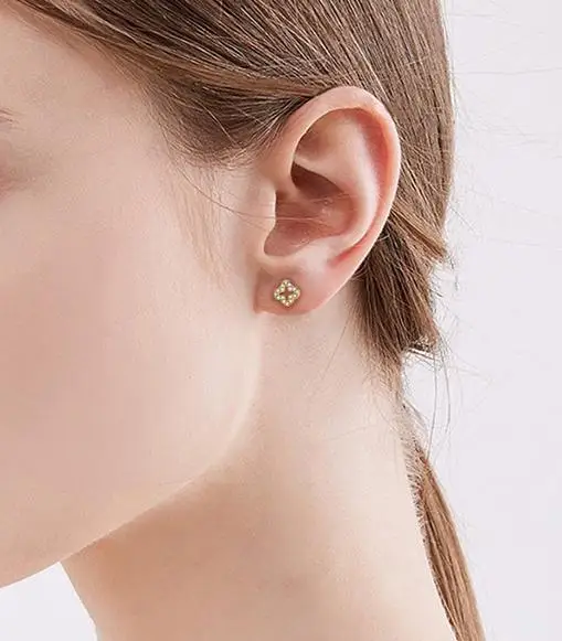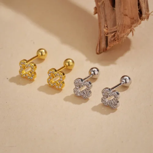 Product Name: 18K Gold Plated Four Leaf Clover 925 Silver Earring for Women, Hollow Design Micro Pave Fashion Jewelry