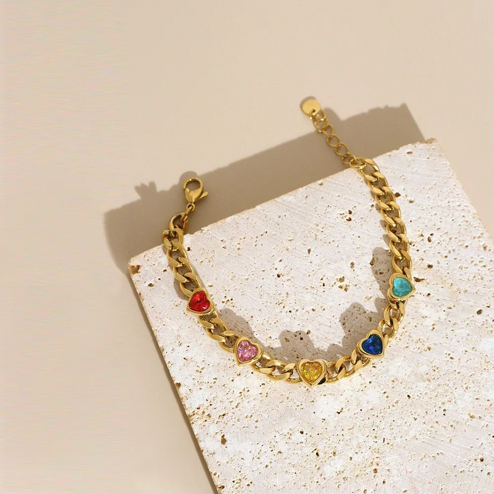 Product Name: 18K Gold Plated Heart Bracelet Colorful Zircon Tarnish Free Jewelry for Women