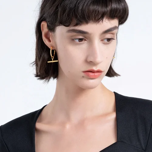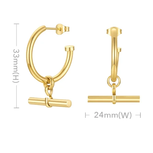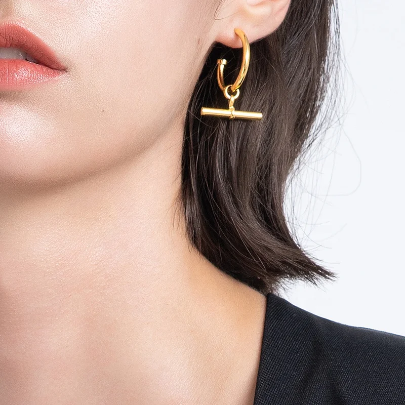 Product Name: 18K Gold Plated Stainless Steel Jewelry C Shaped Stick Accessories Hoop Earrings E211237