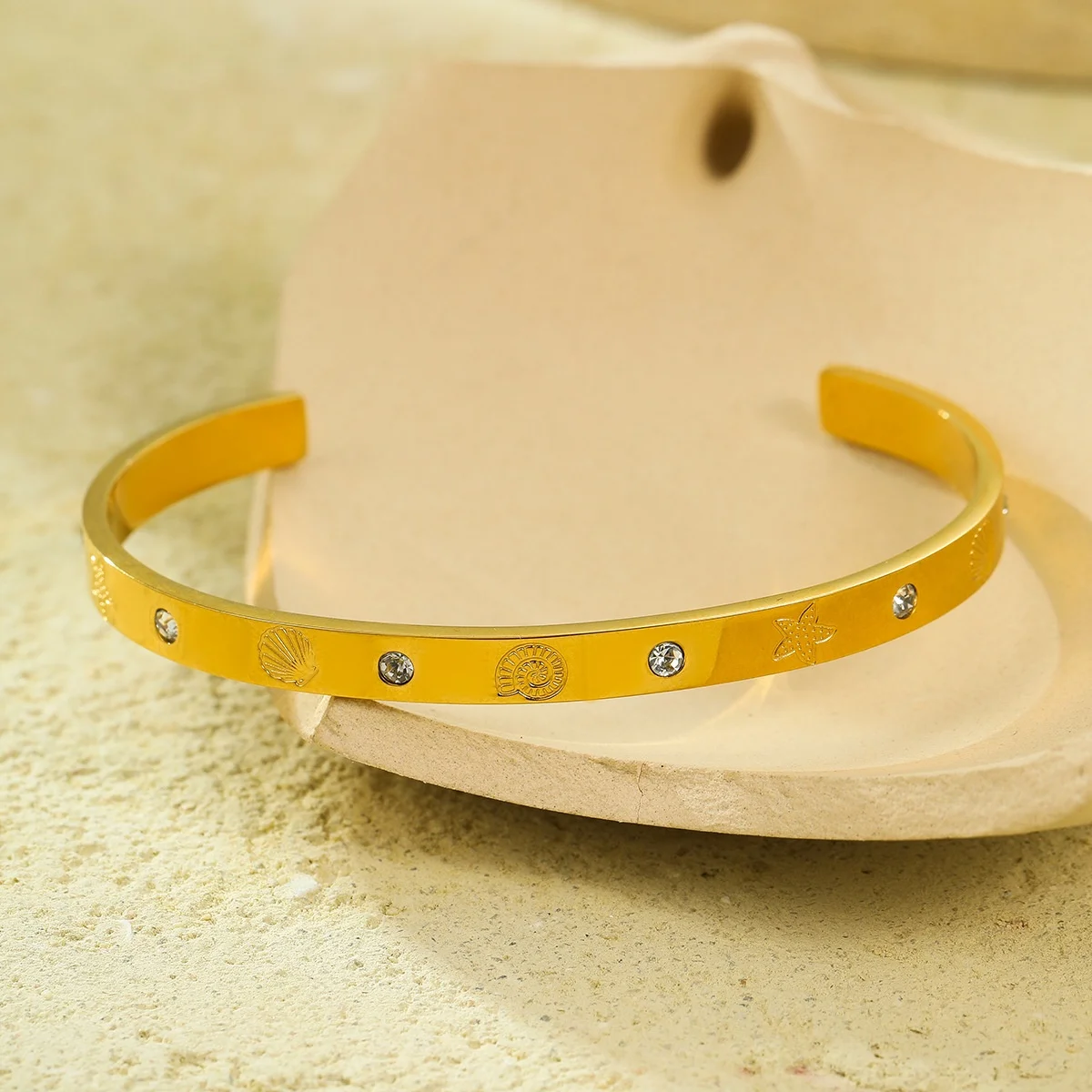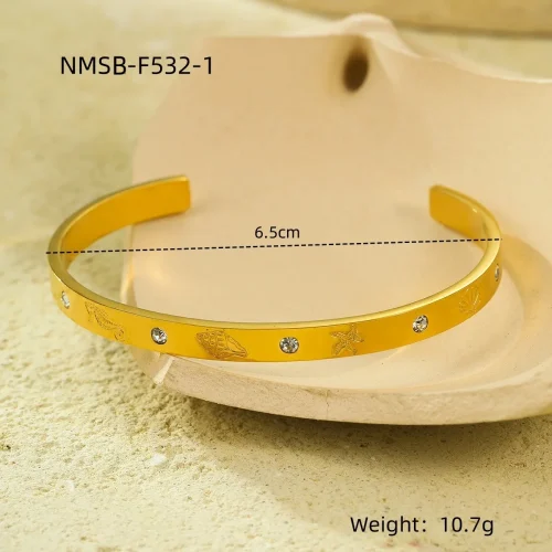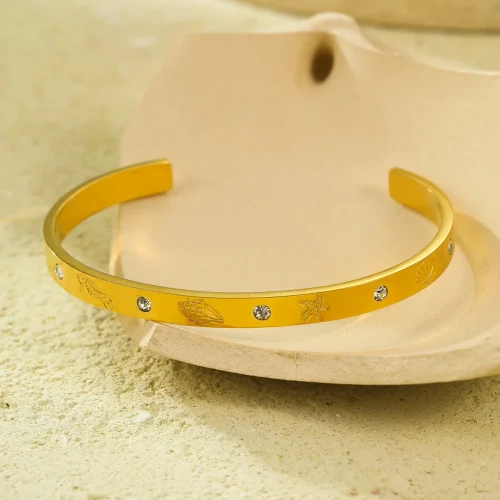 18K Gold Plated Versatile Stainless Steel Bracelet High-End Open Style Zircon Inlay Fashion Bangle