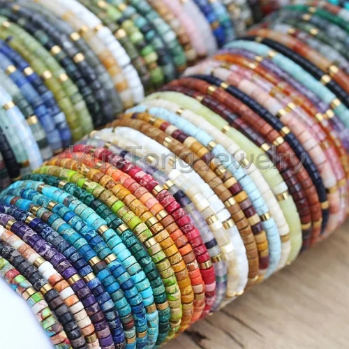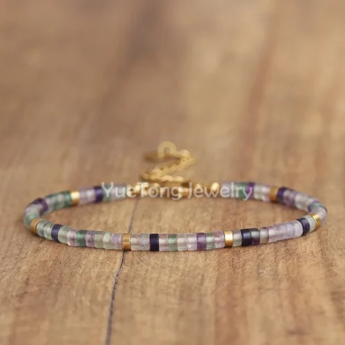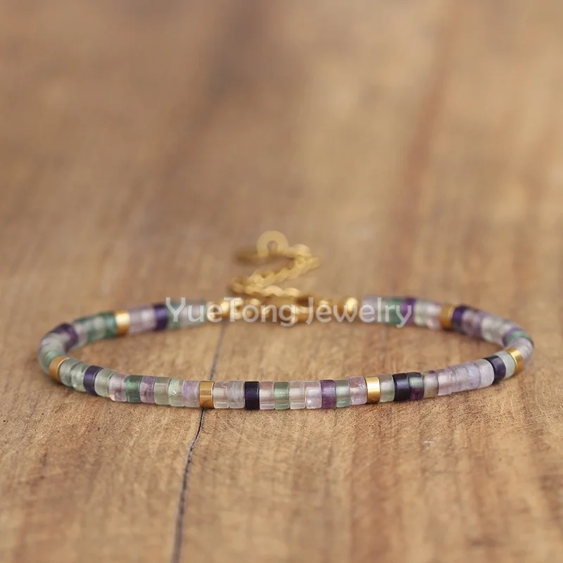 18k Gold Stainless Steel Minimalist 2x4mm Gemstone Beads Dainty Bracelet Natural Stone Women Clasp Chain Adjustable Jewelry