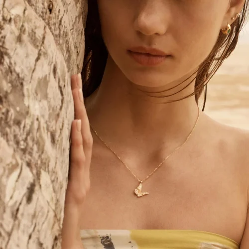 18k Gold Vermeil butterfly Crystal Necklace Women Fashion Ladies Necklaces Designer Necklace 925 Silver