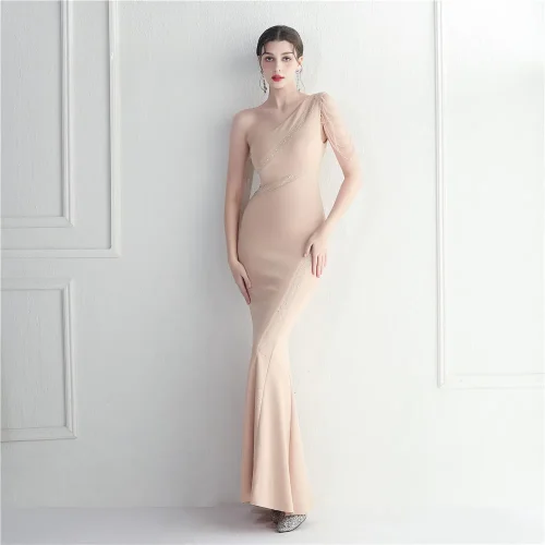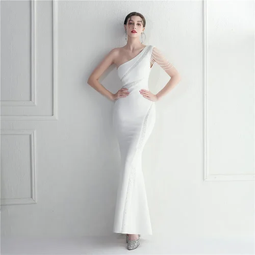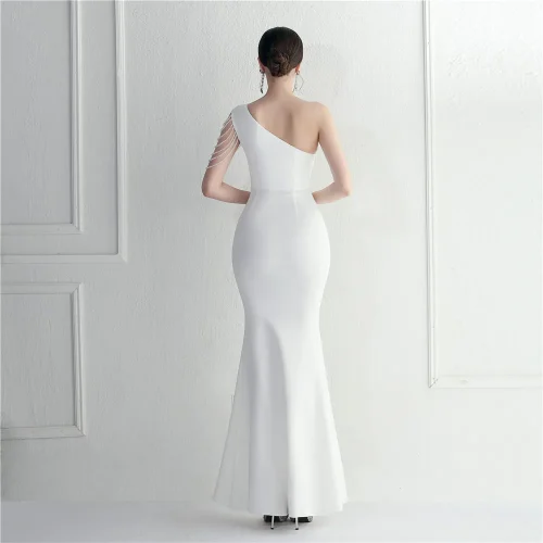 Product Name: 19903# Fashion Handmade Beaded Craft Drilling One Shoulder Diagonal Collar Sexy Ceremony Long Evening Dress