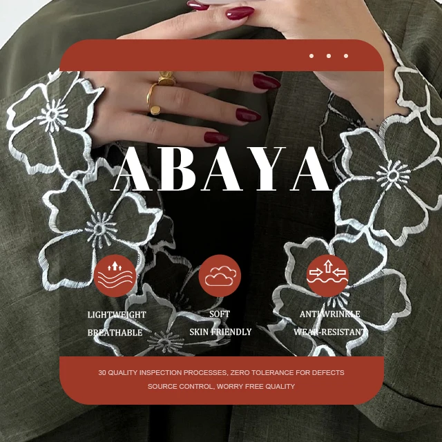 Product Name: 2 Piece Abaya Set Womens Clothing Front Open Abaya and Slip Dress Embroidery Abaya Modest Islamic Clothing