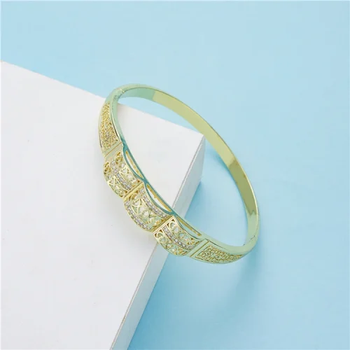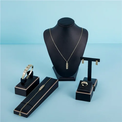 Product Name: 2021 New Arrival Fashion Simple Full Drill Gold Plated Elegant Atmosphere Necklace Earrings Bracelet Ring Jewelry Set Weddings